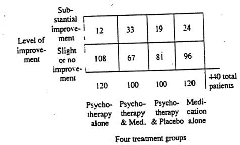 Suppose the psychiatry department of a Massachusetts hospital conducted a 1-year study comparing various treatment methods with the following results: