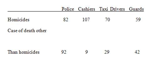 Question: Occupational Hazards: Use the data in the table to test the claim that occupation is independent of whether the same death was homicide. The table is based on data from the U.S. Department of Labor, Bureau of Labor Statistics. Does any particular occupation appear to be most prone to homicide? If so, which one?