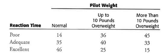 Question: 3: The Egyptian Air Force brass believe that overweight pilots have slow reaction times. They attribute the poor performance of their air force in recent war games in the Sinai to overweight pilots. The accompanying data were collected for all pilots. Analyze these data for the Egyptian Air Force brass.