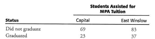 Question: 5: The state personnel office oversees the stare's tuition assistance program, which pays the tuition of civil servants taking courses for an MPA. Only two schools offer an MPA degree in the state capital: Capital College of Law and East Winslow State University. Some concern is expressed by legislators that many tuition-assisted students do not graduate. Analyze the data in the accompanying table for the personnel office.