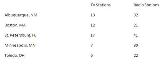 TV and Radio Stations. Is there sufficient evidence at the 0.05 level of significance to conclude th